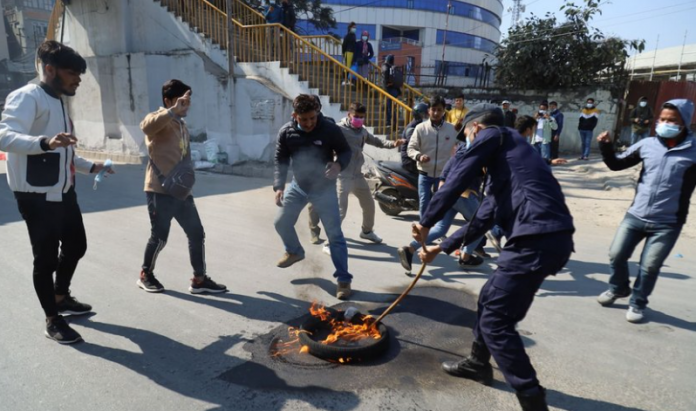 विप्लव नेतृत्वको नेकपाका कार्यकर्ताले सुन्धारामा प्रदर्शन गरेका छन् । सडकमा भेला भएका विप्लवका कायकर्ता टायर बालेर प्रदर्शन गरेका हुन् । सो क्रममा प्रहरीले हस्तक्षेप गरेको थियो भने प्रहरीले केही कार्यकर्तालाई पक्राउ गरेको छ ।