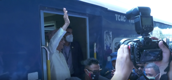 नेकपा एमालेका अध्यक्ष केपी शर्मा ओलीका कारण जनकपुरधाम जयनगर रेल एक घण्टा ढिलो गुडेको छ ।