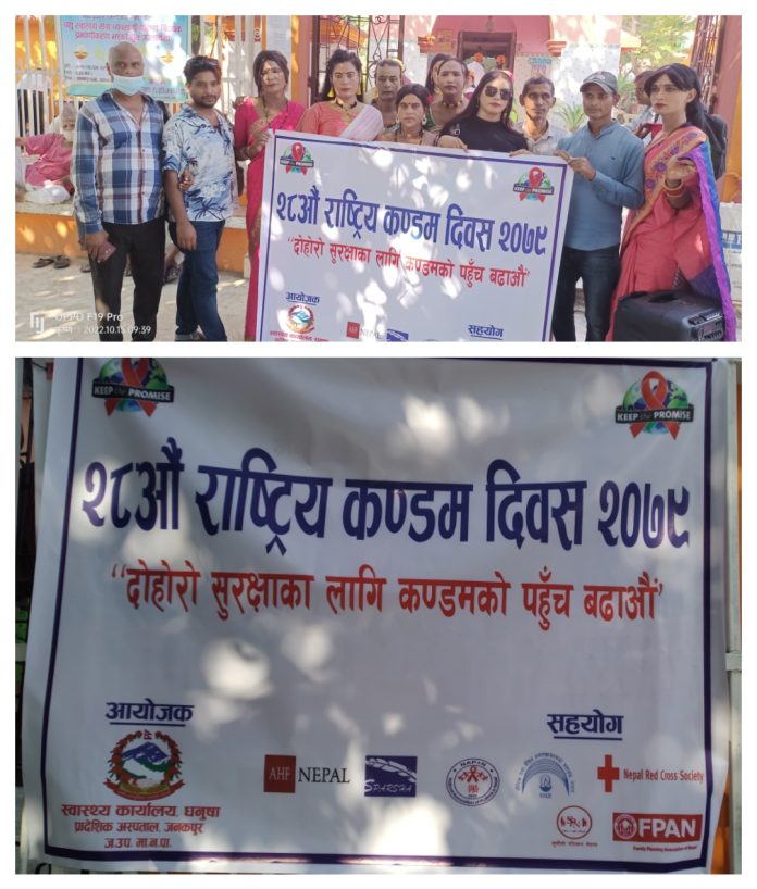 जनकपुरधाम, असाेज २९ । आज २८ औं राष्ट्रिय कण्डम दिवस । देशभर विभिन्न कार्यक्रमको आयोजना गरी जनकपुरधाम पनि मनाइँदैछ ।