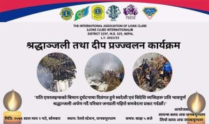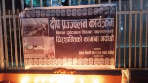 आइतबार भएको यती एअरलाइन्सको एटीआर–७२ विमान दुर्घटनामा ज्यान गुमाउने मृतकहरुको चिरशान्तिको कामना गर्दै जनकपुरधाममा दीप प्रज्वलन गरिएको छ।