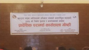 जनकपुरधाम, वैशाख ५ । सोमबार जनकपुरधाममा आयोजित अपांगता भएका व्यक्तिहरुको अधिकार सम्बन्धी अन्तर्राष्ट्रिय महासन्धी २००६ को निष्कर्ष, सुझाव र कार्यान्वयनको अवस्था विषयक प्रादेशिक परामर्श गोष्ठी सम्पन्न भएको छ।