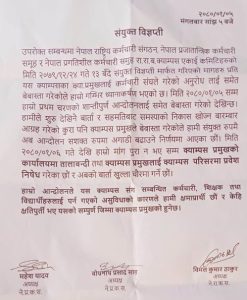 नेपाल राष्ट्रिय कर्मचारी संगठन, नेपाल प्रजातान्त्रिक कर्मचारी समूह र नेपाल प्रगतिशील कर्मचारी समुह रा.रा.ब. क्याम्पस एकाई कमिटिले गत चैत २४ गते १३ बँदे संयुक्त विज्ञप्ती मार्फत गरेको मागलाई क्याम्पस प्रमुख प्रसादले बेबास्ता गरेको नेपाल राष्ट्रिय कर्मचारी संगठनका अध्यक्ष विमल कुमार ठाकुरले बताए ।