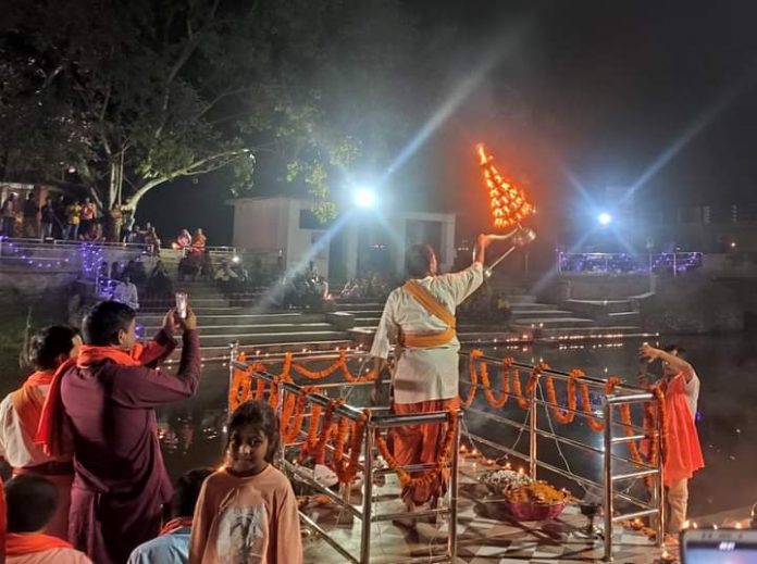 जनकपुरधाम,वैशाख १६ । श्रीजानकी जन्मभूमि जनकपुरधामको पौराणिक दुधमति गंगा नदीको किनारमा जानकी नवमीको अवसरमा महाजानकी आरतीको आयोजन गरेका हुन।