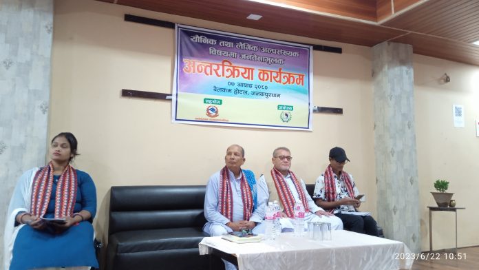 सुनौलो विहानी समाज केन्द्रिय कार्यालय जनकपुरधामको आयोजनामा र जनकपुरधाम उप-महानगरपालिको सहयोगमा मधेश प्रदेशको राजधानी जनकपुरधाममा लैंगिक तथा यौनिक अल्पसंख्यकहरुको विषयमा अन्तरक्रिया कार्यक्रम सम्पन्न भएको छ । bn