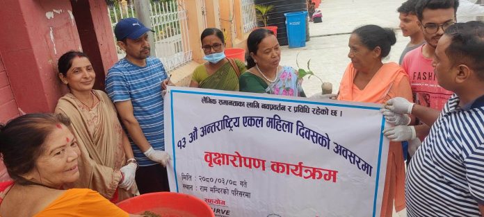 लैंगिक समानताका लागि नवप्रवर्तन र प्रविधि रहेको छ भने नाराका साथ १३ औ अन्तराष्ट्रिय एकल महिला दिवसको अवसरमा स्वच्छ वातावरण निर्माणमा सघाउ पुर्याउने उद्देश्यले वृक्षारोपण कार्यक्रम सम्पन्न गरेका छन्।