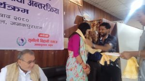 गत सोमबार मधेस प्रदेश शिक्षा तथा समाज कल्याण मन्त्रालयको सहयोग र सुनौलो विहानी समाज जनकपुरधामको आयोजनामा कार्यक्रम सम्पन्न भएको छ।