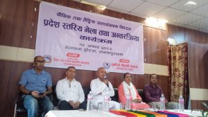 जनकपुरधाम, असार १९ ।मधेस प्रदेशको राजधानी जनकपुरधममा यौनिक तथा लैङ्गकि अल्पसंख्यक समुदायको विषयमा प्रादेशिक स्तरको अन्तक्रिर्या कार्यक्रमको सम्पन्न भएको छ।