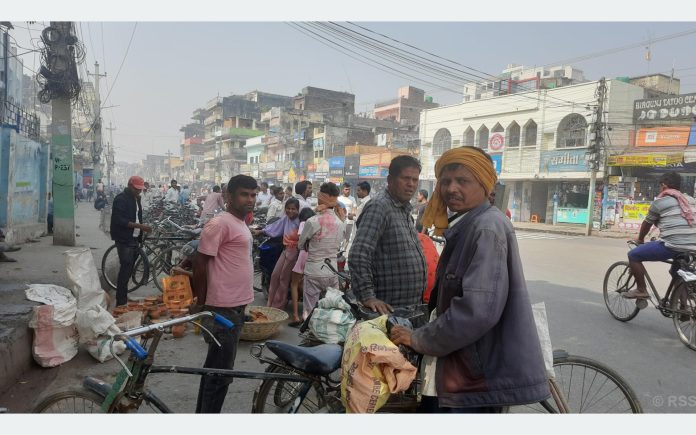 बीरगन्ज, २२ चैत्र । बीरगन्जको घण्टाघर श्रमिकहरुको काम खोजी गर्ने मुख्य थलो बनेका छन् । बिहानको ६ बज्नासाथ घण्टाघर चोकमा श्रमिकहरूको भीड बढ्न थाल्छ। विभिन्न ठाउँबाट आएका मजदुरहरू मुख्य सडकछेउमा साइकल पार्किङ गरी रोजगारदाताको प्रतीक्षामा उभिन्छन्। नयाँ अनुहार देख्ने बित्तिकै उनीहरू काम दिने नाइके हो कि भनेर दौडिन थाल्छन्।