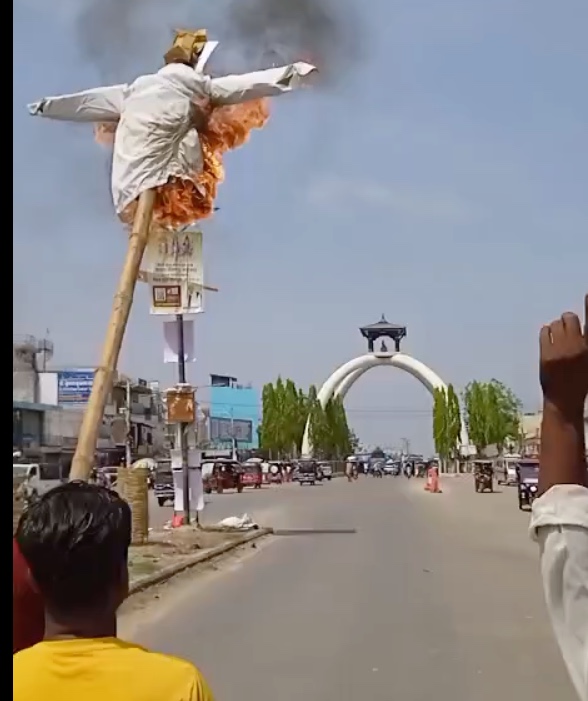 जनकपुर, ३१ चैत्र । बीरगन्जमामा हनुमान जन्मोत्सवको शोभायात्रामा भएको हिंसात्मक घटनाको विरोधमा जनकपुरमा शनिबार राष्ट्रिय एकता अभियानले प्रदर्शन गर्दै गृहमन्त्री रमेश लेखकको पुतला दहन गरेका छन्।