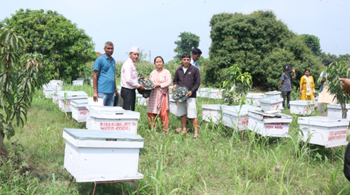 जनकपुर, ९ वैशाख । सर्लाहीका व्यावसायिक मौरीपालक किसानलाई मौरीपालनमा प्रोत्साहन र व्यावसायिक विकासका लागि मौरीको घारसहित विभिन्न सामग्री वितरण गरिएको छ।