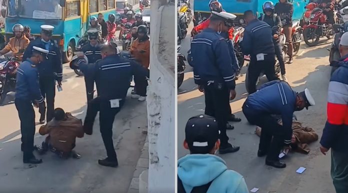 ट्राफिक प्रहरीले बुटले ती व्यक्तिलाई कुटपिट गरेको देखिन्छ । कुटपिट गर्दै कागजपत्र भुईँमै फ्यालेर एक ट्राफिक प्रहरी हिँडेको देखिन्छ । सार्वजनिक भिडिओ काठमाडौं उपत्यकाकै रहेको जस्तो देखिन्छ । सडकमा बाक्लो भिडभाड र कीर्तिपुर यातायात लेखेको बस समेत देखिएका कारण भिडिओ काठमाडौं उपत्यकाकै हुनसक्ने आशंका गरिएको हो ।