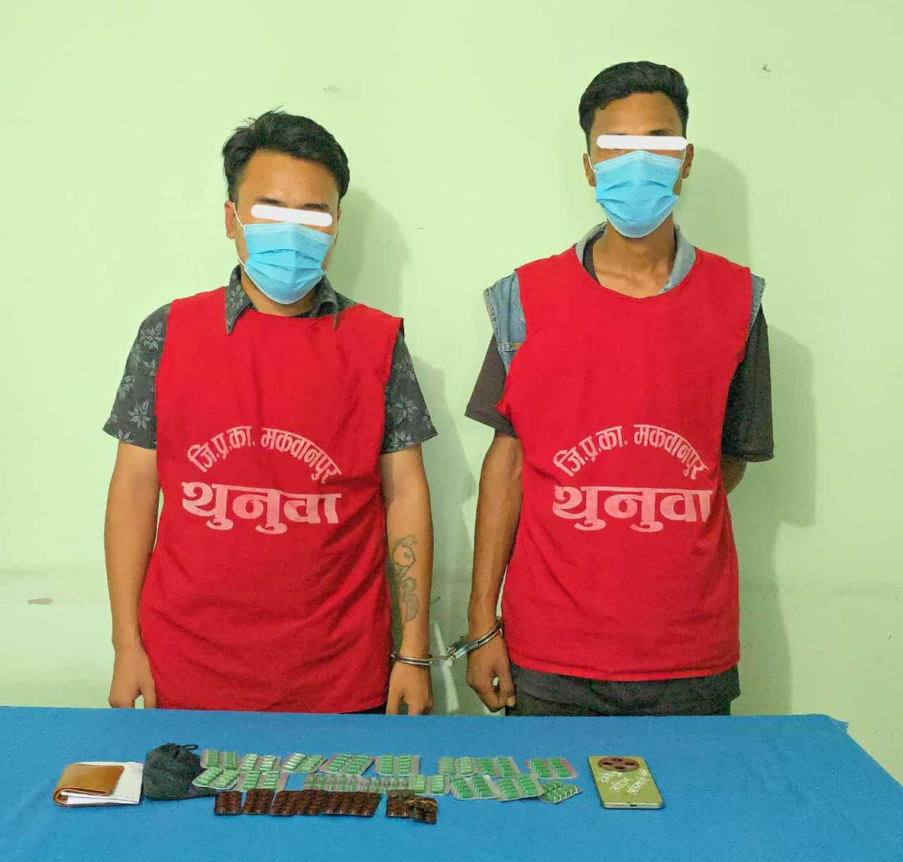हेटौंडा,२६ जेठ । मकवानपुर प्रहरीले लागूऔषध ट्रामाडोलसहित दुई जनालाई पक्राउ गरेको छ। हेटौंडा उपमहानगरपालिका–५ स्थित सानोपोखरा चोकबाट शंकास्पद रूपमा बसिरहेका उनीहरूलाई सोमबार पक्राउ गरिएको हो।