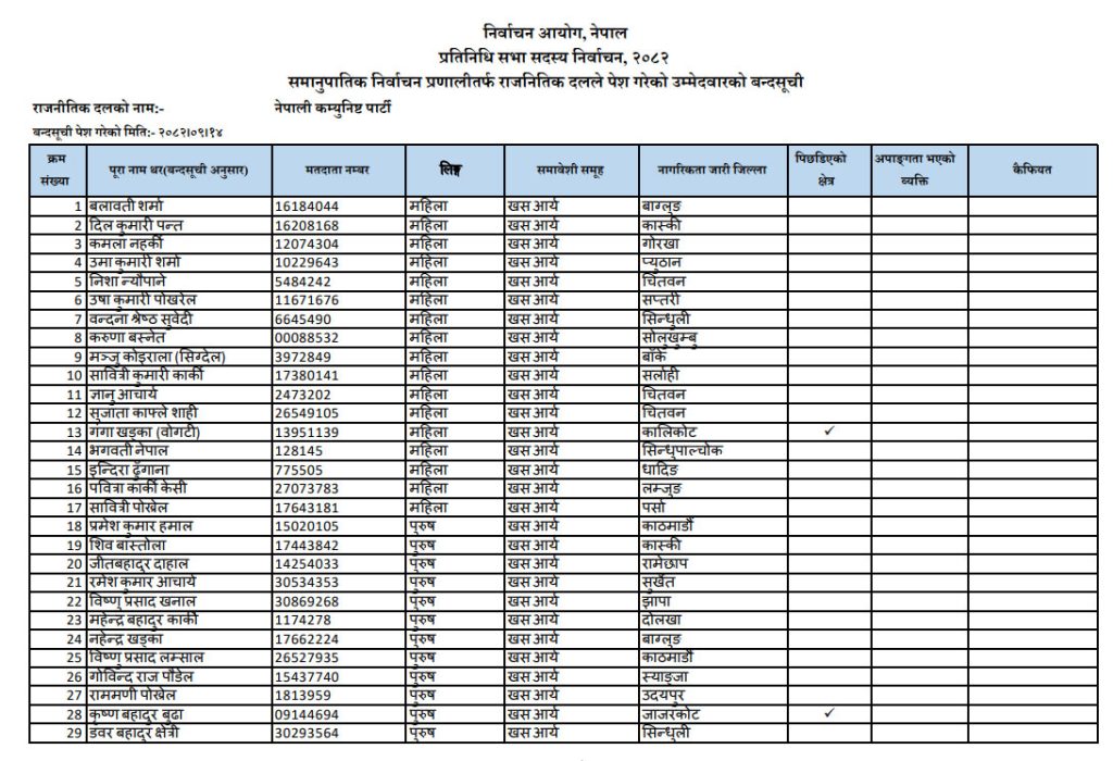हेर्नुहोस् नेपाली कम्युनिस्ट पार्टीका समानुपातिक उम्मेदवारको सूची