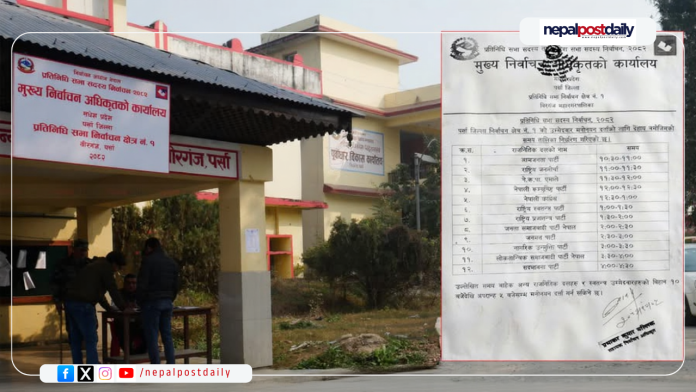 वीरगञ्ज । प्रतिनिधि सभा सदस्य निर्वाचन–२०८२ अन्तर्गत पर्सा जिल्ला निर्वाचन क्षेत्र नम्बर २ का लागि उम्मेदवार मनोनयन दर्ताको समय तालिका सार्वजनिक गरिएको छ।