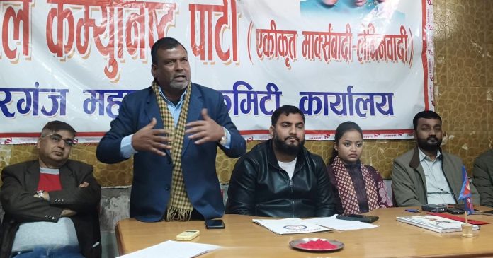 वीरगन्ज,१४ माघ । नेकपा एमाले वीरगन्ज महानगर कमिटीको चौथो पूर्ण बैठक सम्पन्न भएको छ। बैठक महानगर कमिटीका कार्यबाहक अध्यक्ष लियाकत अलिको अध्यक्षतामा तथा पार्टीका केन्द्रीय सदस्य विजय कुमार सरावगीको प्रमुख आतिथ्यमा सम्पन्न भएको हो।