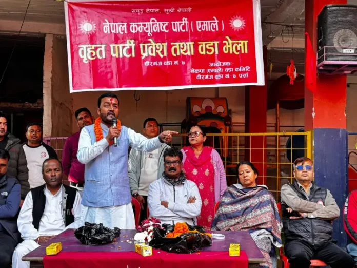 वीरगन्ज,०९ फागुन । वीरगन्ज महानगरपालिका–७ मा आयोजित कार्यक्रममा जनता समाजवादी पार्टी (जसपा) नेपालका स्थानीय नेता र वडाध्यक्षका उम्मेदवार दीपक महतो दीपक महतो नेपाल कम्युनिस्ट पार्टी (एमाले) मा प्रवेश गरेका छन्।