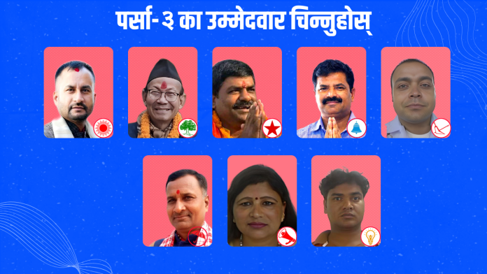 वि.सं. २०८२ को प्रतिनिधि सभा निर्वाचन अन्तर्गत पर्सा–३ निर्वाचन क्षेत्रमा विभिन्न राजनीतिक दल तथा स्वतन्त्र उम्मेदवारहरूले प्रतिस्पर्धा गरेका छन् ।