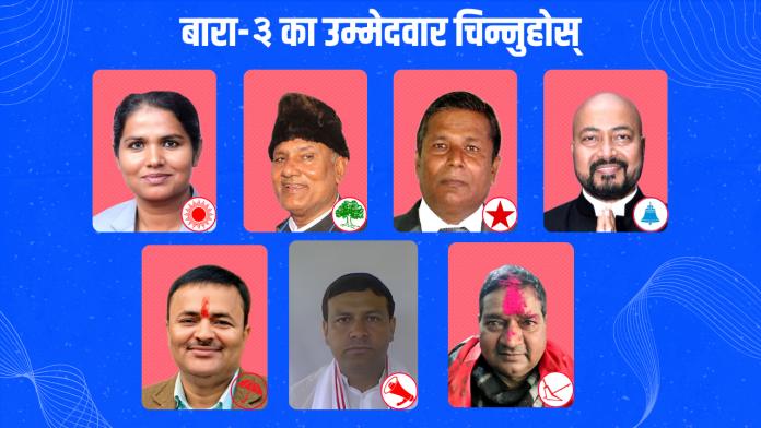 वि.सं. २०८२ को प्रतिनिधि सभा निर्वाचन अन्तर्गत बारा–३ निर्वाचन क्षेत्रमा विभिन्न राजनीतिक दल उम्मेदवारहरूले प्रतिस्पर्धा गरेका छन् ।