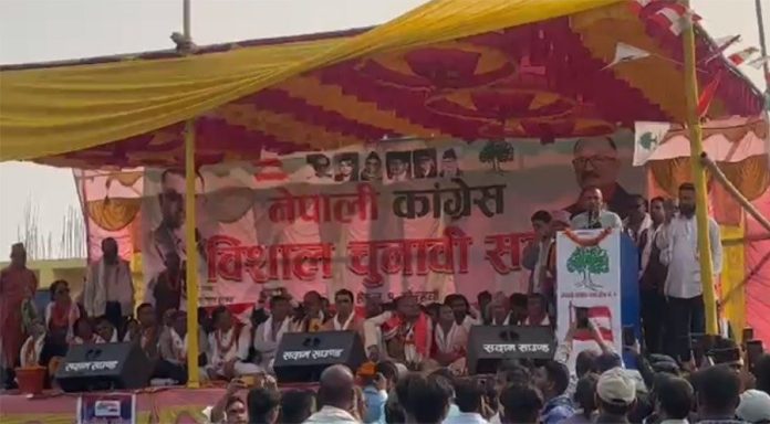 उनले फागुन २१ गते हुने निर्वाचनमा आन्तरिक गडबडी नगरी एकताबद्ध भएर कांग्रेसलाई मत दिन कार्यकर्तालाई आह्वान गरे। आगामी पाँच वर्ष विकास, सुधार र स्थायित्वको ग्यारेन्टी कांग्रेसले लिने दाबी गर्दै उनले देशलाई द्वन्द्व र विभाजनबाट टाढा राख्ने प्रतिबद्धता जनाए।