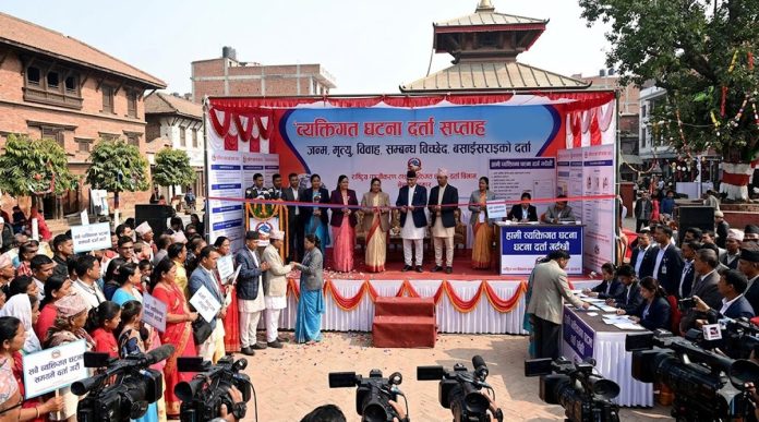काठमाडौं,०२ वैशाख । नागरिकको कानुनी पहिचान सुदृढ गर्दै राज्यको तथ्याङ्कीय प्रणालीलाई व्यवस्थित बनाउने उद्देश्यका साथ आजदेखि देशभर ‘व्यक्तिगत घटना दर्ता सप्ताह’ सुरु भएको छ।