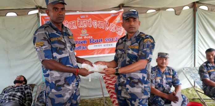बीरगन्ज,०५ वैशाख । सशस्त्र प्रहरी बल नेपाल नं. १३ गण पर्सा ले आफ्नो १९औँ स्थापना दिवसको अवसरमा रक्तदान कार्यक्रम सम्पन्न गरेको छ।