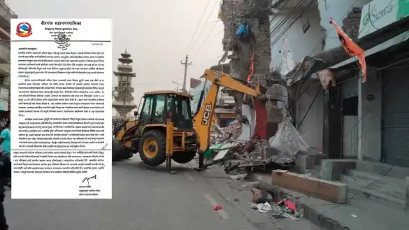 बीरगन्ज, १३ वैशाख । बीरगन्ज महानगरपालिकाले मेनरोड (त्रिभुवन राजपथ) विस्तार कार्यमा अवरोध गर्ने र मेयरविरुद्ध आपत्तिजनक अभिव्यक्ति दिने व्यक्तिहरूलाई कानुनी कारबाही गर्न स्थानीय प्रशासनसँग आग्रह गरेको छ।